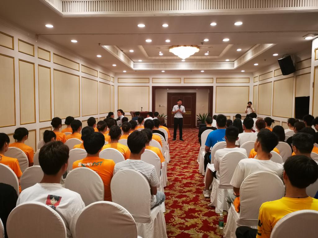 杨主席代表酒店向同学们表示热烈欢迎,结合自身经历讲述三个动人的小故事,并提出三点希望:一是希望同学们服从分配,服从安排;二是希望同学们虚心接受师傅们的指导,不要任性;三是希望酒店各部门高度重视,充分配合,积极帮助各位同学。