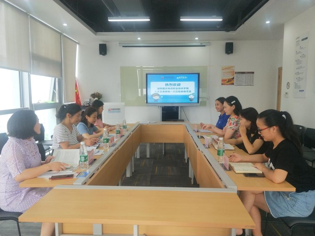 首先,研学导师部负责人带我们参观了旅行社,并从成长之路、课程体系、安全体系、服务标准、案例展示几个方面介绍了企业。产品总监刘畅女士详细介绍了IE国际教育所从事的研学旅游产品打造过程。随后,校企双方就公司旅游管理专业人才培养方案的课程体系提出了修改建议。最后,刘经理与王总、吴总就校企合作问题,从课程开设、团队互派、员工实习等方面提出了建设性的探讨。