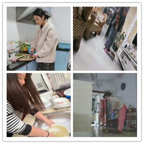 “疫情期被圈禁的时光……我们都还是自顾自的房里刷着手机。后来接到学院“感恩亲人--放下手机,学做家务”活动后,我也有了自己的很多第一次!第一次为爸爸熏艾草,第一次帮妈妈敷面膜,第一次为爸妈做饭,第一次主动承担家务活。……,听到他们夸我懂事了,我心里真的特别高兴。……我在长大,爸妈在变老……放下手机,学做家务,感受自己心中那份幸福。”1902班杨杰感悟。