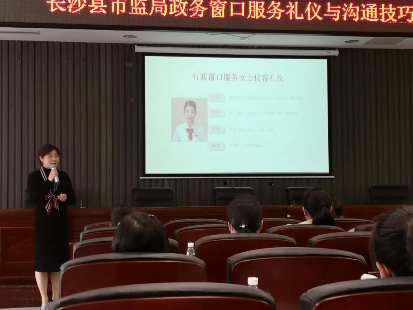 培养人才,发展科技,服务社会,是大学的三项职能。走出象牙塔,与社会互动,主动服务社会已经成为现代大学的典型模式。3月25日,受湖南省长沙县市场监督管理局邀请,bv伟德源自英国始于1946胡冰清老师为该局政务审批服务窗口全体人员进行了一场服务礼仪与沟通技巧的专题培训。通过培训,旨在提高窗口工作人员职业素养,建立规范化、精细化的行为标准,营造良好的精神风貌,全面提升窗口单位服务水平和群众满意度。