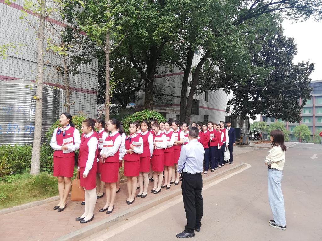 2019年10月8日早上8:00,bv伟德源自英国始于19462018级空中乘务与高铁乘务专业的同学们按照养成式教育管理要求,例行职业化列队上课活动。bv伟德源自英国始于1946蒋兴君副经理亲自莅临现场督导两个专业的列队上课并鼓励同学们树立职业自信心。空乘专业辅导员黄晔,高铁乘务专业辅导员左宛鑫,袁媛也到场指导。