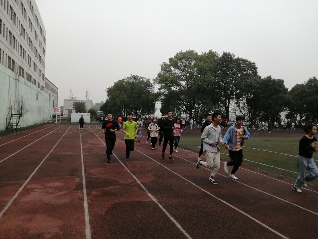 在学校大操场上,晨跑的员工井然有序,成为早上校园里一道靓丽的风景线。