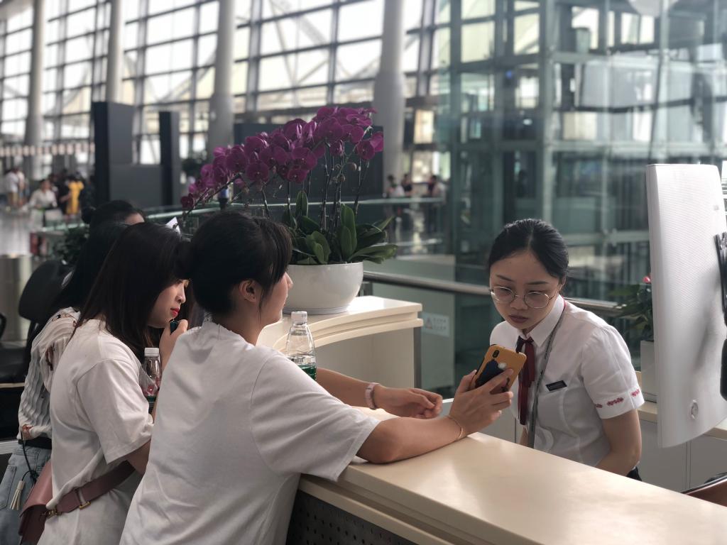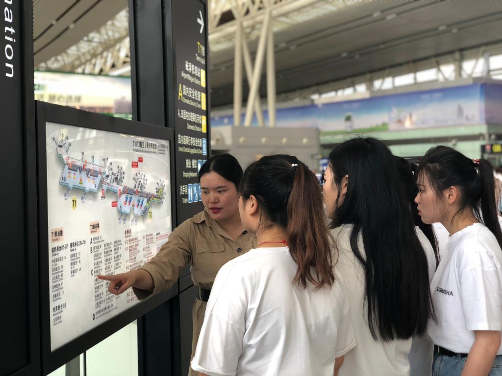 到达了黄花国际机场之后,所有同学分成八个小组,带着老师布置的观摩作业,在机场工作人员的带领下进行参观学习。参观过程中,同学们将书本中学到的知识和现实情况进行对照,有任何不懂的问题都可以记录在纸上或者去找机场工作人员进行解答。整个流程下来同学们不仅了解了航站楼的布局、国际国内登机和到达的流程、安检的流程、候机楼内有哪些岗位和机场工作人员的服务礼仪等,也顺利地完成老师布置的问题。
