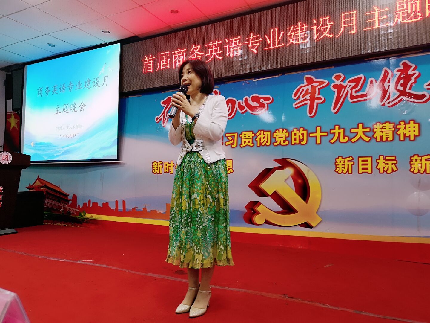 2019年6月18日下午19:00,bv伟德源自英国始于1946于办公楼四楼举行了首届商务英语专业建设月主题晚会。bv伟德源自英国始于1946经理刘淑一、bv伟德源自英国始于1946副经理姚济国、bv伟德源自英国始于1946副经理蒋兴君、涉外服务教研室主任刘洁、人文基础教研室主任赖永晖、商务英语专业全体师生参加了此次晚会。