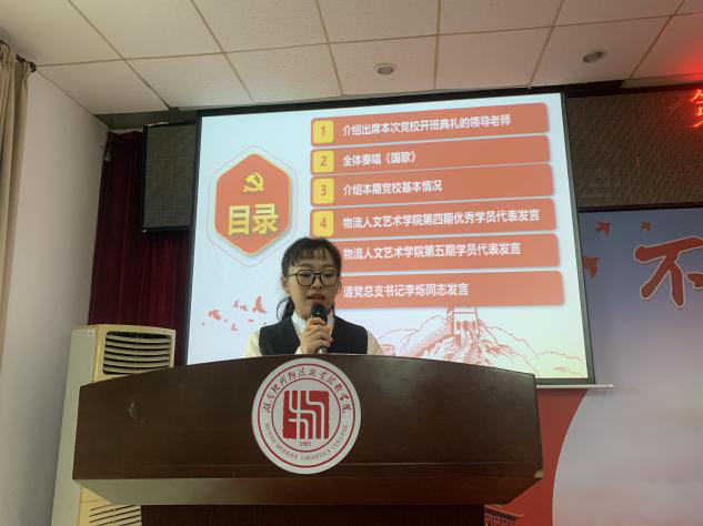 姚济国宣读了这次培训班的培训方案,对这次培训工作做出了系统全面的部署安排。第四期积极分子培训班优秀学员2019级安检专业的刘香和第五期积极分子培训班学员2019级空乘安检专业的郑雅心同学代表全体学员作了表态发言。李烁同志讲话。他从深入领会培训的目的和意义、培训的要求、确保学习教育成效等方面,对全体学员提出了要求和期望。