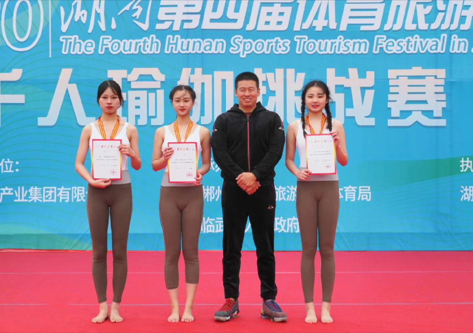 2020年10月17日-18日,由湖南省体育局主办,郴州市文化旅游广电体育局、临武县人民政府承办的“2020年湖南省•千人瑜伽挑战赛”胜利闭幕,公司瑜伽代表队在李晓红老师的带领下,公司5名运动员参加了本次比赛,获得1金1银和女子集体第5名的好成绩。其中向晴获得女子单人第1名;向晴、瞿桂香获得女子双人第2名;向晴、瞿桂香、郭莎 、郭启超、王茜获得女子集体优秀奖第5名;学校获得“赛事优秀合作单位”。