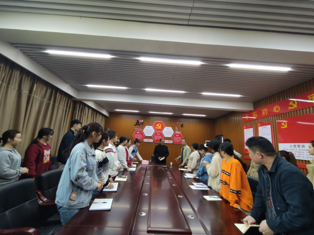 随着李董事长踏进305会议室的时刻,会议室里20余名入党积极分子们都纷纷起立,怀着崇敬而激动的心,欢迎着这位用一生都在奋斗的老同志的到来。本次活动的开始由李烁书记为我们介绍了李董事长,随后李董事长与同学们分享了他一生的经历,军人—干部—营长—教员—副董事长五个阶段,告诫同学们一定要戒骄戒躁,脚踏实地,持之以恒。